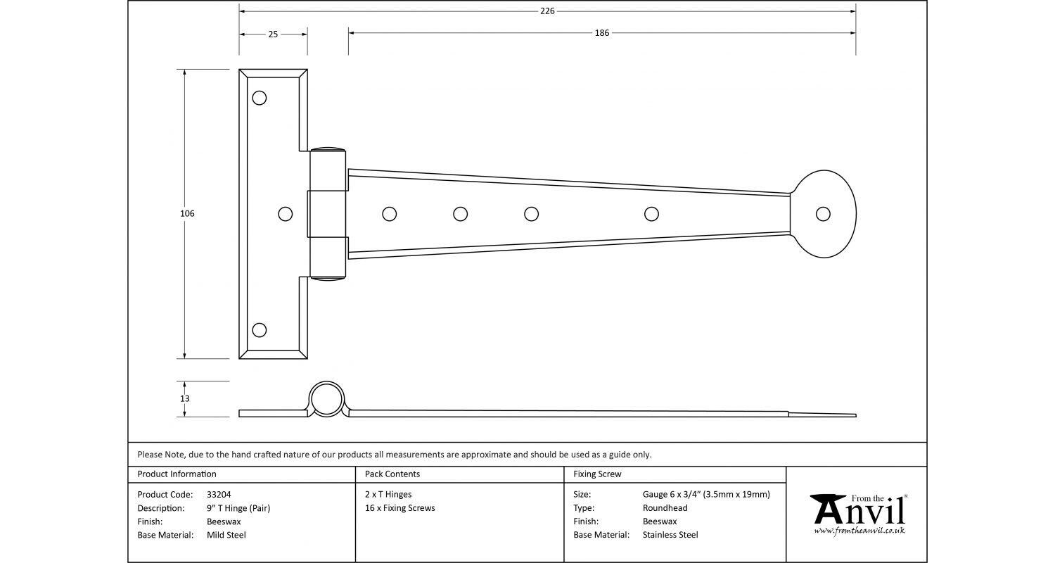 9” T-Hinge 鍛造アイアンヒンジ 22.8cm 33204