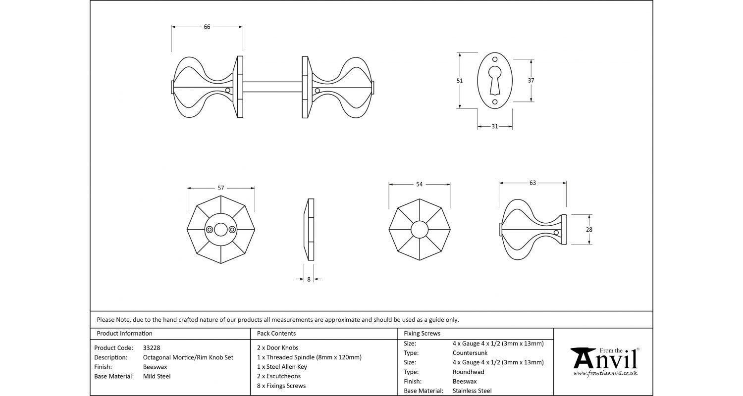 Octagonal Knob 八角形のノブ ドアノブ 33228