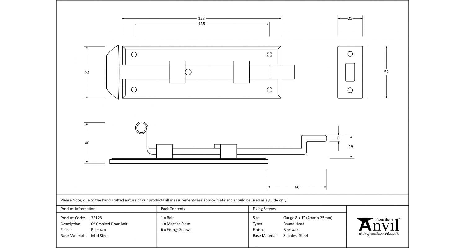4" Cranked Door Bolt クランク・ドアボルト スライド錠 33129