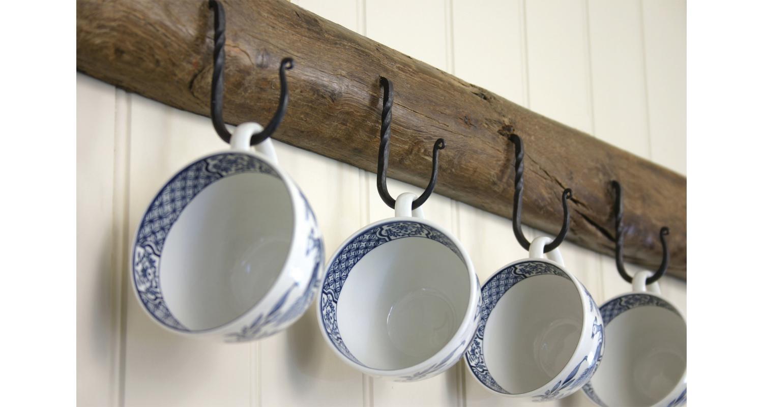 カップフックは、装飾的なねじれと穏やかな曲線を特徴としています。ドレッサーにカップを吊るしたり、タオルを吊るしたりして、様々な用途で使用できます。